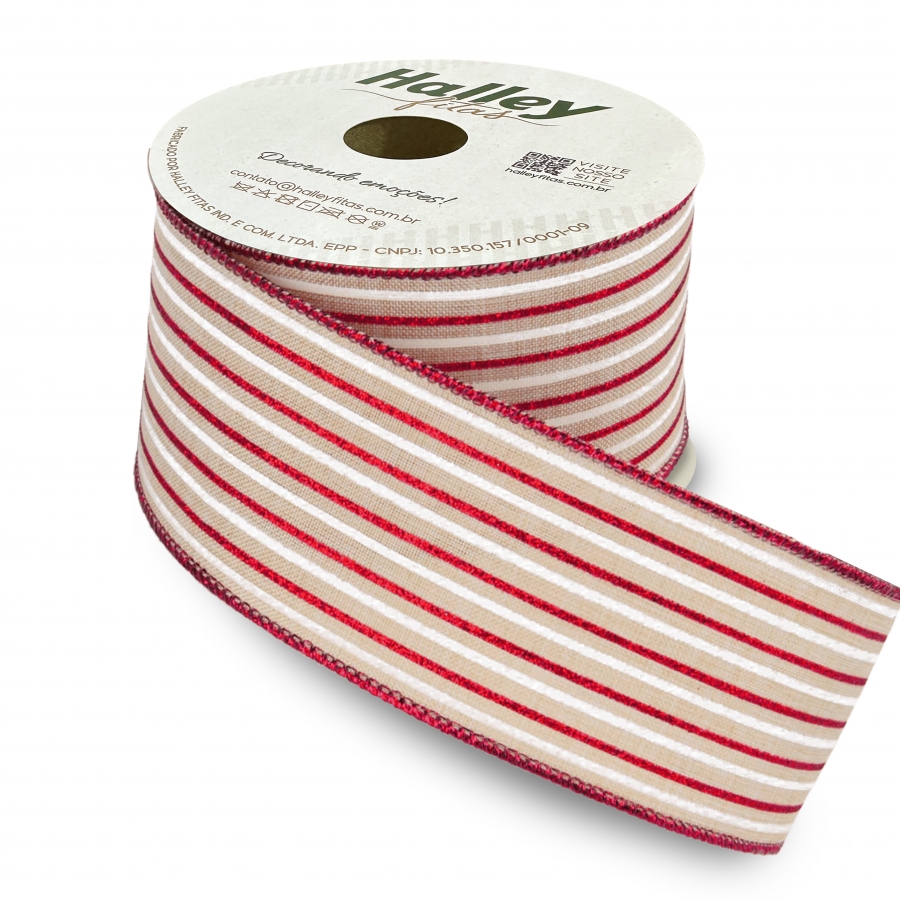 FITA LISTRAS BRANCO E VERMELHO GLITTER